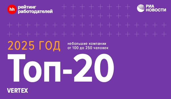 Компания VERTEX продолжает укреплять свои позиции на рынке труда, достигнув нового значимого успеха. Сегодня hh.ru, крупнейший российский сервис по поиску работы и найму персонала, объявил результаты ежегодного Рейтинга работодателей России, в котором наша Компания заняла почетное 20-е место!