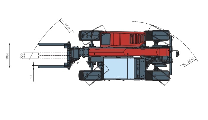 Радиус поворота по концам вил, м: